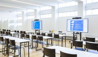Kokoustekniikka: Tilassa 2 kpl liikuteltavaa 98"-näyttöä, joihin voi yhdistää tietokoneen HDMI-piuhalla tai Clickshare-järjestelmällä. Näytöissä on integroituna äänentoisto-kamera-mikrofoni -järjestelmä