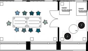 Kokoustekniikka: Tilassa on liikuteltava näyttö johon voi yhdistää tietokoneen HDMI-piuhalla tai Clickshare-järjestelmällä. Näytössä on integroituna äänentoisto-kamera-mikrofonijärjestelmä.